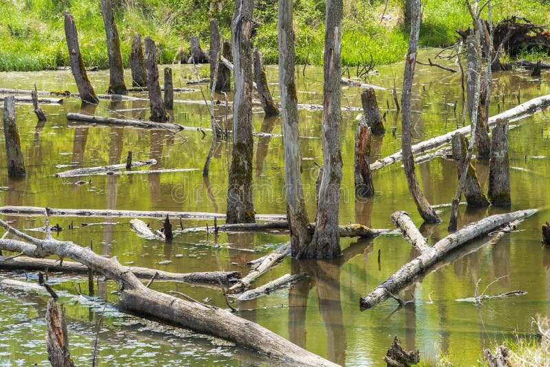 Biotopo con tocones de árboles en el agua imagen de archivo Biotopo con tocones de árboles en el agua
