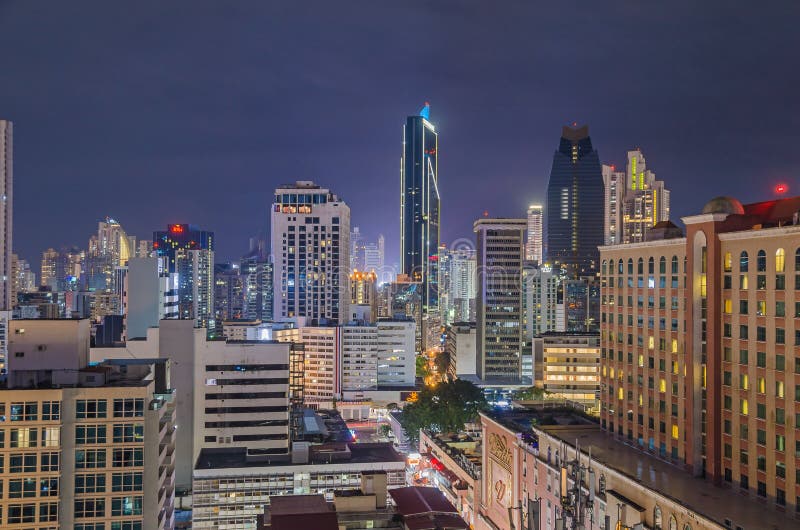 Ciudad de Panamá, Panamá - 2 de noviembre de 2017: Skyline de la Ciudad de Panamá de noche con Towerbank, Hyatt Place y Veneto Grand Hotel. Vista desde la azotea del hotel Tryp by Windham.
